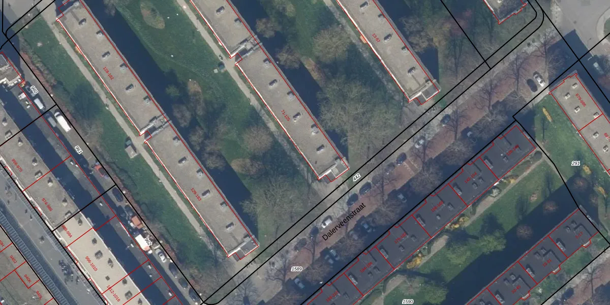 Het perceel waarop Dalerveenstraat 87 staat heeft een oppervlakte van 1,3 ha. Dit is een zeer groot perceel. De perceeloppervlakte wordt geregistreerd door het Kadaster. Gedetailleerde informatie over de maten van dit perceel kunt u vinden in het rapport Kadastrale kaart met maatvoering van Dalerveenstraat 87.
