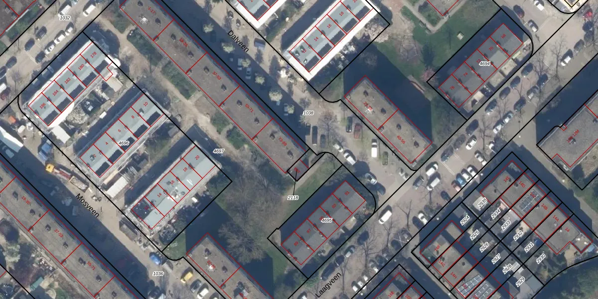 Het perceel waarop Dalveen 87 staat heeft een oppervlakte van 3493 m². Dit is een zeer groot perceel. De perceeloppervlakte wordt geregistreerd door het Kadaster. Gedetailleerde informatie over de maten van dit perceel kunt u vinden in het rapport Kadastrale kaart met maatvoering van Dalveen 87.