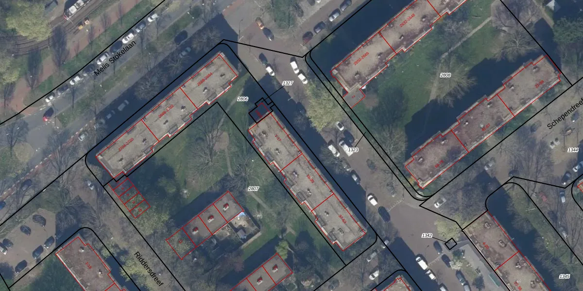 Het adres is gelegen op perceel 2806 in de sectie AW en de kadastrale gemeente 's-Gravenhage. De kadastrale aanduiding is aldus GVH37-AW-2806. De oppervlakte van het perceel is 1973 m². Dat is groter dan gemiddeld in 's-Gravenhage, waar de gemiddelde perceeloppervlakte op 1320,78 m² ligt. De grootste perceeloppervlakte in de kadastrale gemeente is 12,9 ha. De kleinste oppervlakte bedraagt 0 m². Op het perceel zijn 48 adressen aanwezig. In de Basisregistratie Kadaster (BRK) werden de grenzen van het perceel geregistreerd op 25-07-2003.