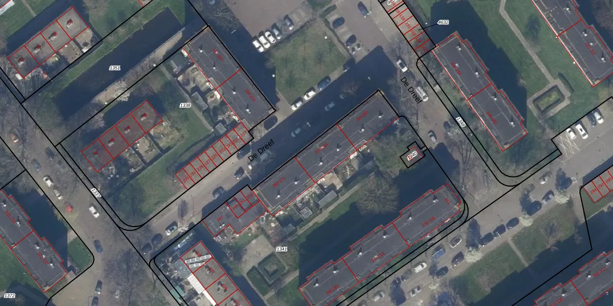Het perceel waarop De Dreef 275 staat heeft een oppervlakte van 4430 m². Dit is een zeer groot perceel. De perceeloppervlakte wordt geregistreerd door het Kadaster. Gedetailleerde informatie over de maten van dit perceel kunt u vinden in het rapport Kadastrale kaart met maatvoering van De Dreef 275.