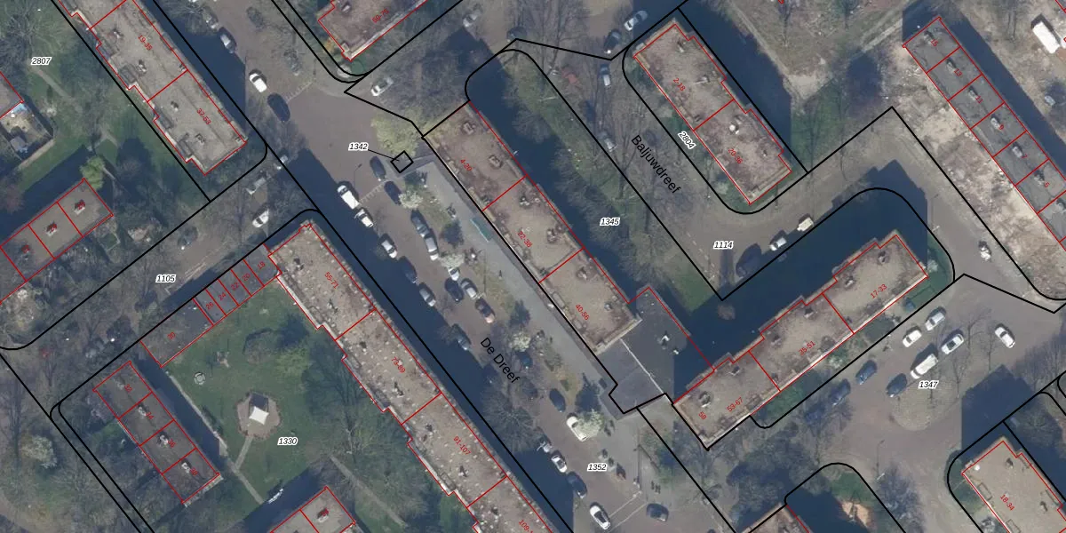 Het perceel waarop De Dreef 32 staat heeft een oppervlakte van 2916 m². Dit is een zeer groot perceel. De perceeloppervlakte wordt geregistreerd door het Kadaster. Gedetailleerde informatie over de maten van dit perceel kunt u vinden in het rapport Kadastrale kaart met maatvoering van De Dreef 32.