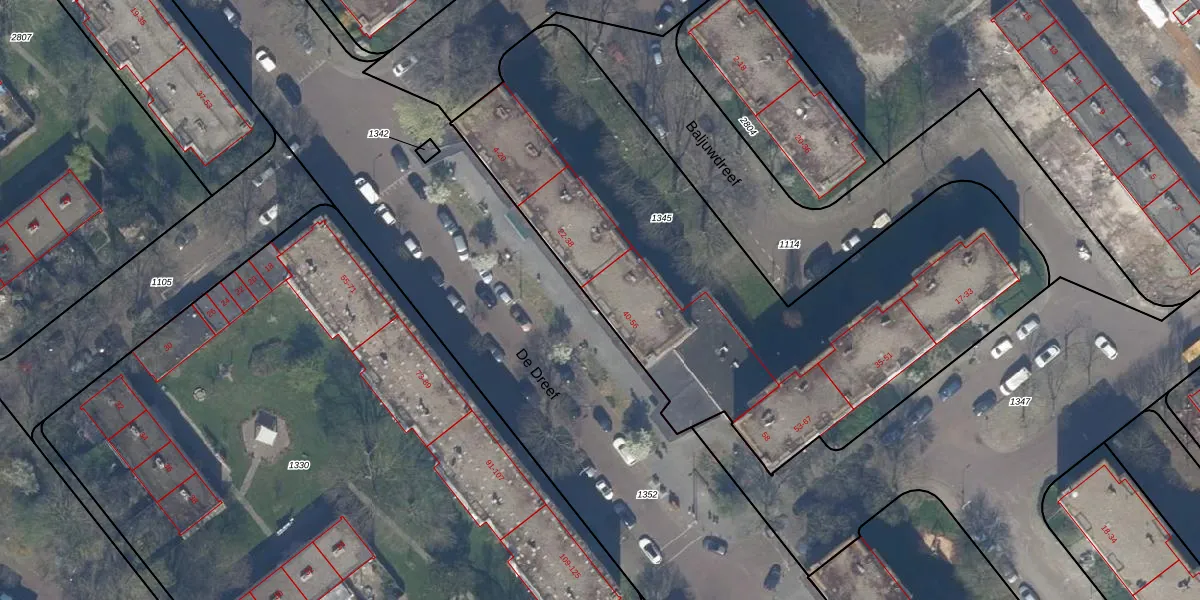 Het perceel waarop De Dreef 42 staat heeft een oppervlakte van 2916 m². Dit is een zeer groot perceel. De perceeloppervlakte wordt geregistreerd door het Kadaster. Gedetailleerde informatie over de maten van dit perceel kunt u vinden in het rapport Kadastrale kaart met maatvoering van De Dreef 42.