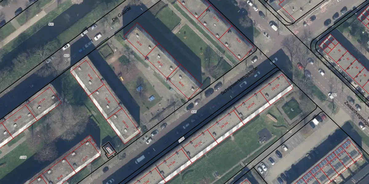 Het perceel waarop De Gaarde 58 staat heeft een oppervlakte van 9689 m². Dit is een zeer groot perceel. De perceeloppervlakte wordt geregistreerd door het Kadaster. Gedetailleerde informatie over de maten van dit perceel kunt u vinden in het rapport Kadastrale kaart met maatvoering van De Gaarde 58.