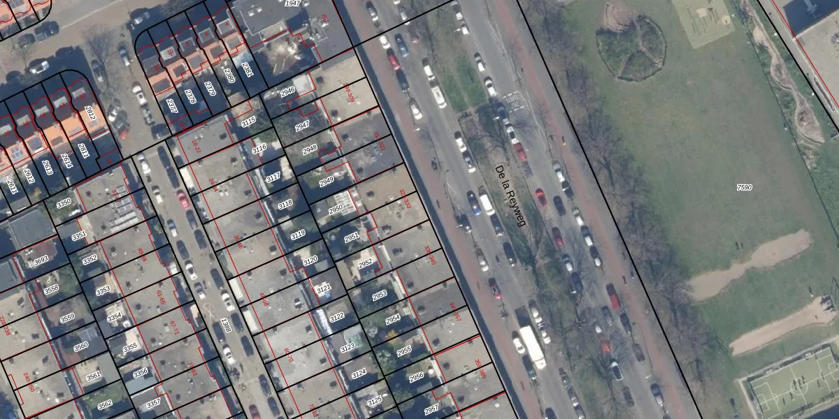 Het perceel waarop het adres ligt is GVH28-AL-2951. De afkorting 'GVH28' staat voor kadastrale gemeente 's-Gravenhage. De gemiddelde perceelgrootte in 's-Gravenhage is 722,74 m². Dit perceel is kleiner: de perceeloppervlakte bedraagt 186 m². Het grootste perceel in de kadastrale gemeente is 89,9 ha. Het kleinste perceel heeft een oppervlakte van 0 m². Er zijn 3 adressen aanwezig op het perceel. De laatste wijziging in het de Basisregistratie Kadaster (BRK) was op 12-12-2007.