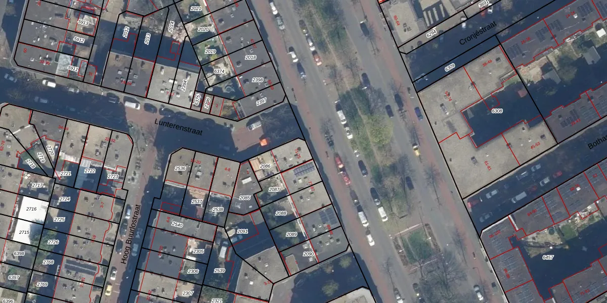 Het adres ligt op het perceel GVH28-AL-2086, dat zich in de kadastrale gemeente 's-Gravenhage bevindt. Het perceel is 159 m² groot. Dat is kleiner dan de gemiddelde perceeloppervlakte in 's-Gravenhage, dat op 722,74 m² ligt. Het kleinste perceel in de kadastrale gemeente is 0 m² groot. De grootste perceeloppervlakte is 89,9 ha. Er zijn 3 adressen aanwezig op het perceel. De laatste wijziging in het de Basisregistratie Kadaster (BRK) was op 27-09-2007.