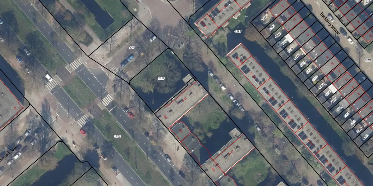 Het adres is gelegen op perceel 2530 in de sectie AW en de kadastrale gemeente 's-Gravenhage. De kadastrale aanduiding is aldus GVH37-AW-2530. De oppervlakte van het perceel is 4895 m². Dat is groter dan gemiddeld in 's-Gravenhage, waar de gemiddelde perceeloppervlakte op 1320,78 m² ligt. Het grootste perceel in de kadastrale gemeente is 12,9 ha. Het kleinste perceel heeft een oppervlakte van 0 m². Op het perceel zijn 86 adressen aanwezig. De laatste wijziging in het de Basisregistratie Kadaster (BRK) was op 08-11-2002.