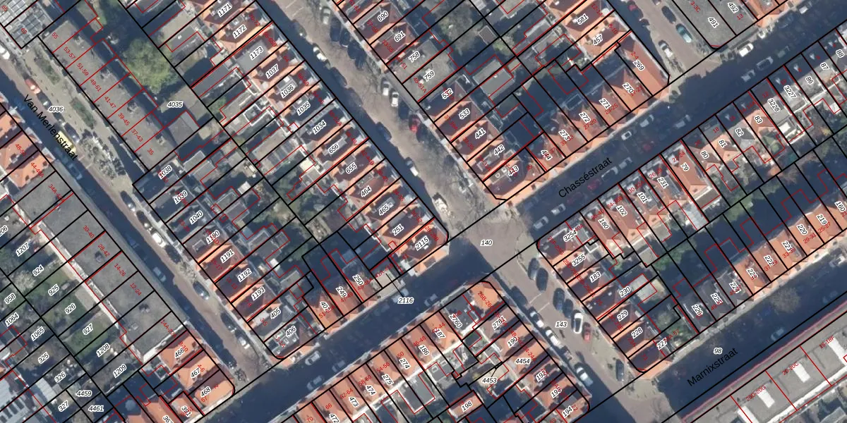 Het perceel waarop het adres ligt is GVH15-W-251. De afkorting 'GVH15' staat voor kadastrale gemeente 's-Gravenhage. Het perceel is 124 m² groot. Dat is kleiner dan de gemiddelde perceeloppervlakte in 's-Gravenhage, dat op 230,29 m² ligt. Het kleinste perceel in de kadastrale gemeente is 1 m² groot. De grootste perceeloppervlakte is 1,5 ha. Er zijn 2 adressen aanwezig op het perceel. In de Basisregistratie Kadaster (BRK) werden de grenzen van het perceel geregistreerd op 31-10-2003.