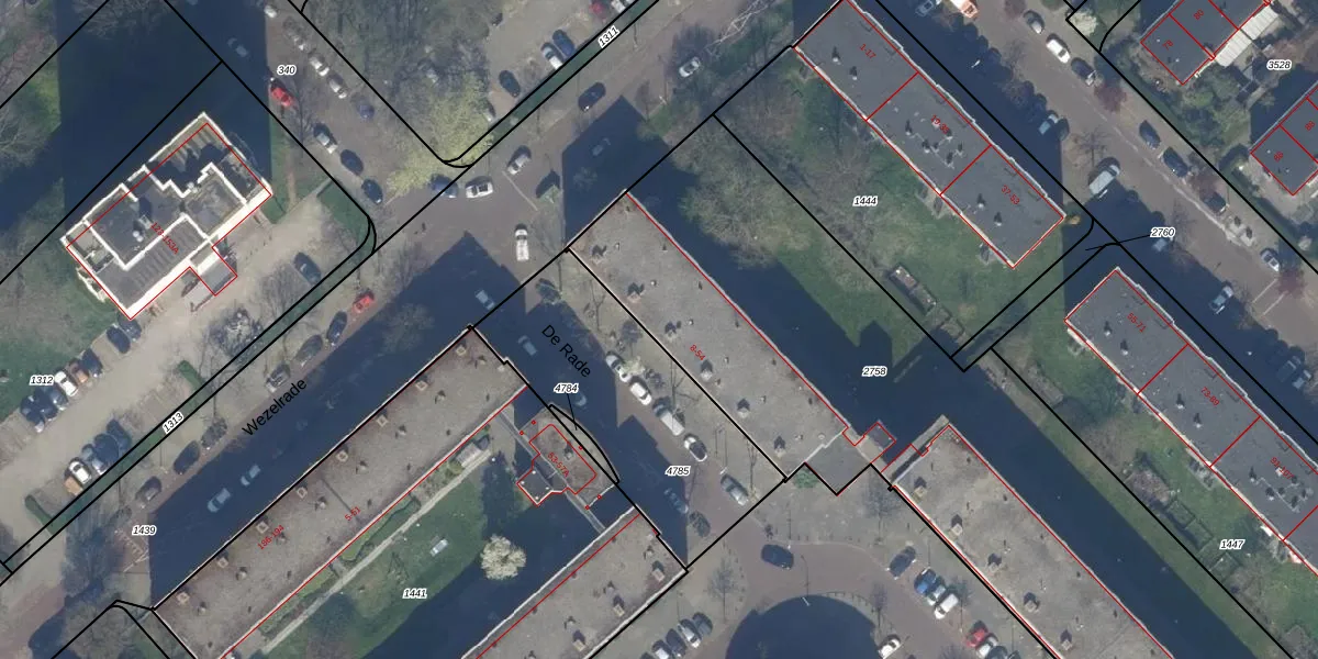 De Rade 12 is gelegen op kadastraal perceel GVH37AW2758. Deze kadastrale aanduiding is uniek en wordt gebruikt door het Kadaster om eigendomsrechten en andere zakelijke rechten vast te leggen. Het perceel maakt onderdeel uit van de kadastrale gemeente 's-Gravenhage.
