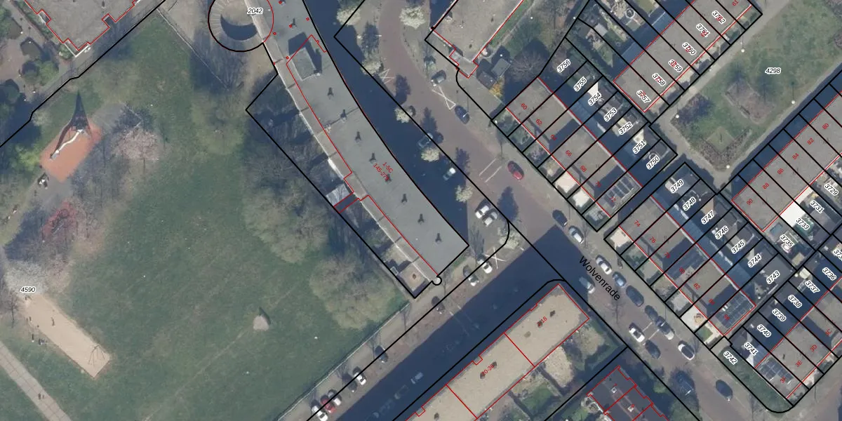 De Rade 187 is gelegen op kadastraal perceel GVH37AW2042. Deze kadastrale aanduiding is uniek en wordt gebruikt door het Kadaster om eigendomsrechten en andere zakelijke rechten vast te leggen. Het perceel maakt onderdeel uit van de kadastrale gemeente 's-Gravenhage.
