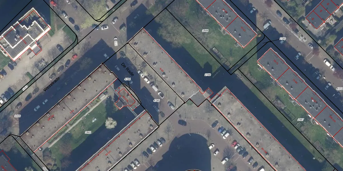 De Rade 34 is gelegen op kadastraal perceel GVH37AW2758. Deze kadastrale aanduiding is uniek en wordt gebruikt door het Kadaster om eigendomsrechten en andere zakelijke rechten vast te leggen. Het perceel maakt onderdeel uit van de kadastrale gemeente 's-Gravenhage.