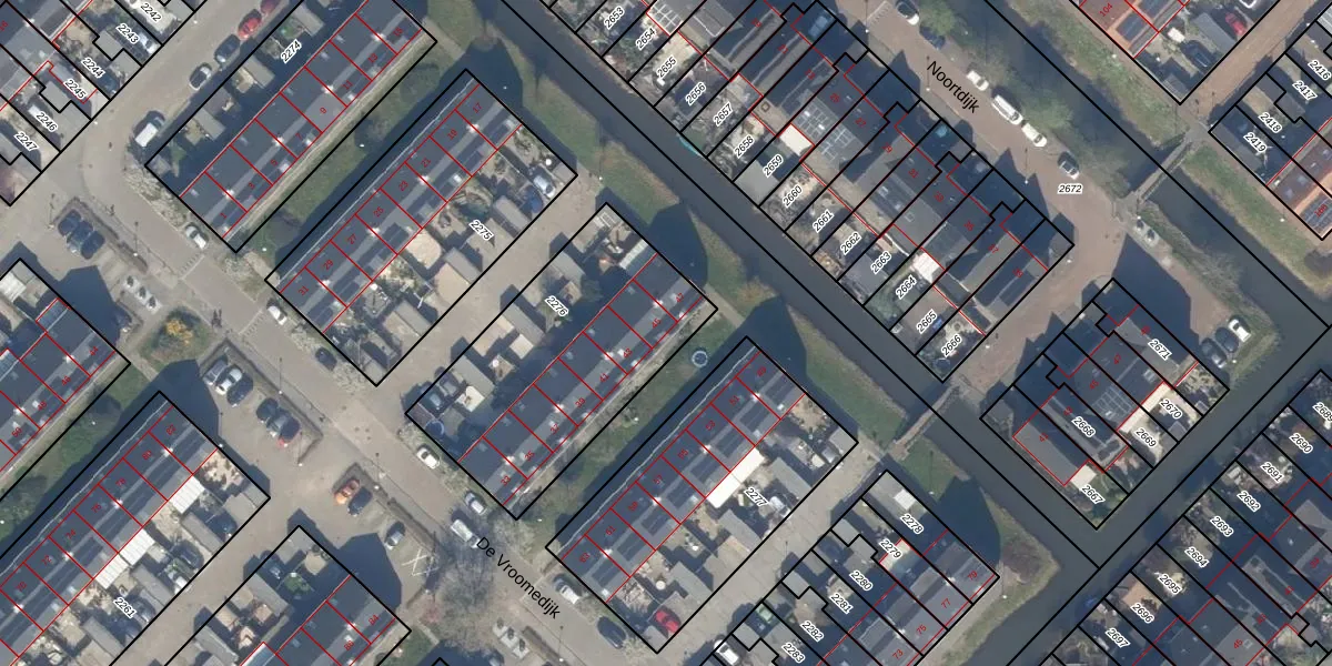 Het perceel waarop De Vroomedijk 45 staat heeft een oppervlakte van 1010 m². Dit is een zeer groot perceel. De perceeloppervlakte wordt geregistreerd door het Kadaster. Gedetailleerde informatie over de maten van dit perceel kunt u vinden in het rapport Kadastrale kaart met maatvoering van De Vroomedijk 45.