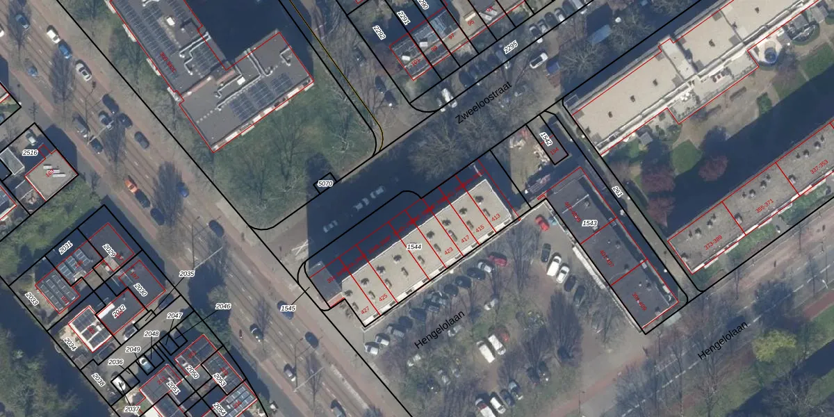 Het perceel waarop het adres ligt is GVH37-AW-1544. De afkorting 'GVH37' staat voor kadastrale gemeente 's-Gravenhage. Het perceel is kleiner dan gemiddeld in 's-Gravenhage. Het perceel is 1017 m² groot, terwijl het gemiddelde ligt op 1320,78 m². De grootste perceeloppervlakte in de kadastrale gemeente is 12,9 ha. De kleinste oppervlakte bedraagt 0 m². Op het perceel zijn 42 adressen aanwezig. In de Basisregistratie Kadaster (BRK) werden de grenzen van het perceel geregistreerd op 26-10-2004.