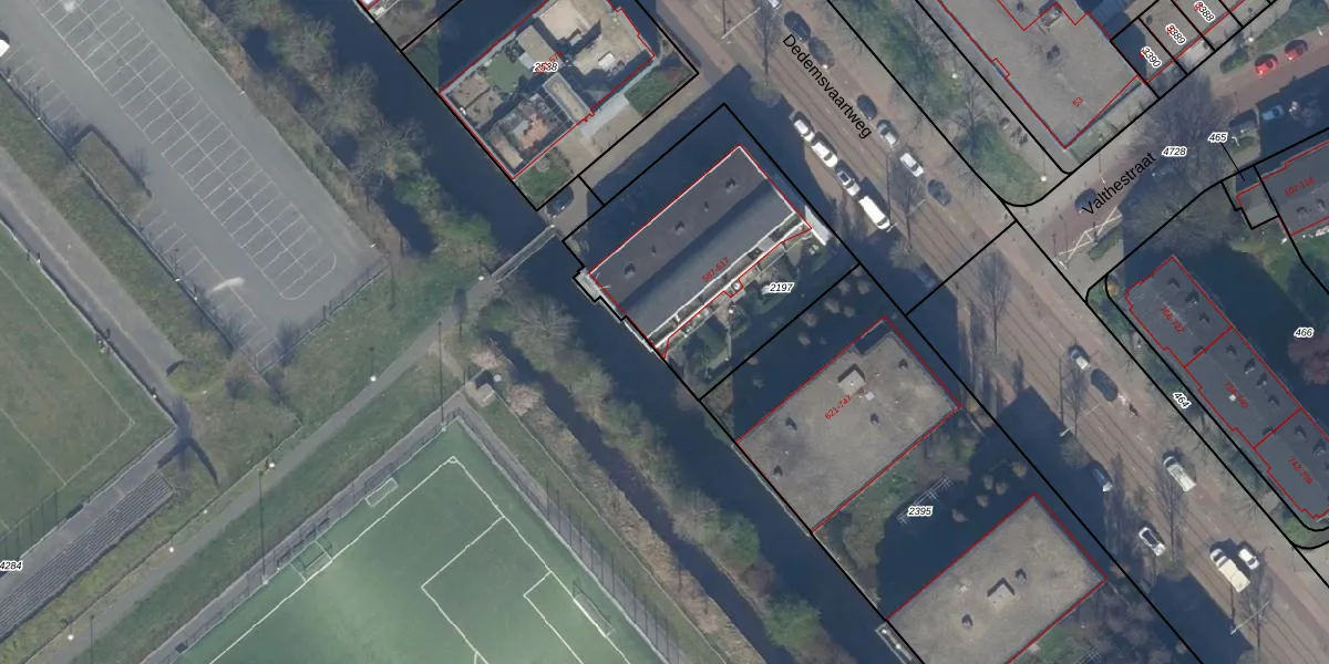 Dedemsvaartweg 597 is gelegen op kadastraal perceel GVH37AW2197. Deze kadastrale aanduiding is uniek en wordt gebruikt door het Kadaster om eigendomsrechten en andere zakelijke rechten vast te leggen. Het perceel maakt onderdeel uit van de kadastrale gemeente 's-Gravenhage.