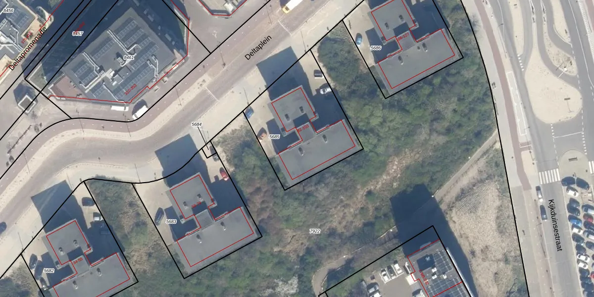 Het perceel waarop Deltaplein 83 staat heeft een oppervlakte van 1031 m². Dit is een zeer groot perceel. De perceeloppervlakte wordt geregistreerd door het Kadaster. Gedetailleerde informatie over de maten van dit perceel kunt u vinden in het rapport Kadastrale kaart met maatvoering van Deltaplein 83.