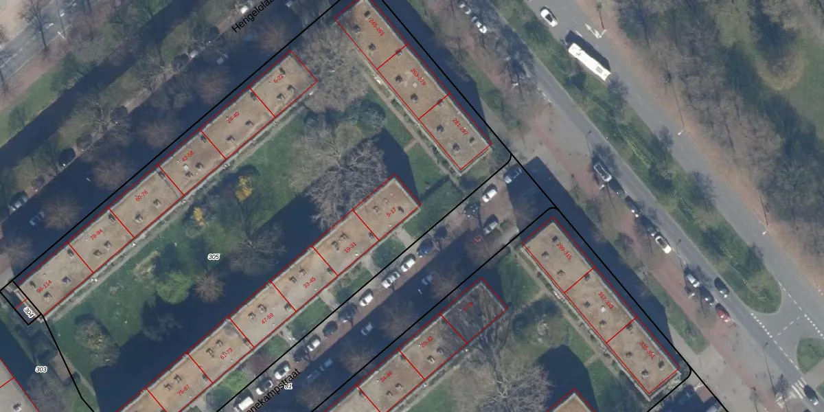 Het adres ligt op het perceel GVH37-AW-305, dat zich in de kadastrale gemeente 's-Gravenhage bevindt. De gemiddelde perceeloppervlakte in de kadastrale gemeente 's-Gravenhage is 1320,78 m². Dit perceel is met zijn 6539 m² dus groter dan gemiddeld. Het kleinste perceel in de kadastrale gemeente is 0 m² groot. De grootste perceeloppervlakte is 12,9 ha. Op het perceel liggen in totaal 115 adressen. De laatste wijziging in het de Basisregistratie Kadaster (BRK) was op 23-06-2003.