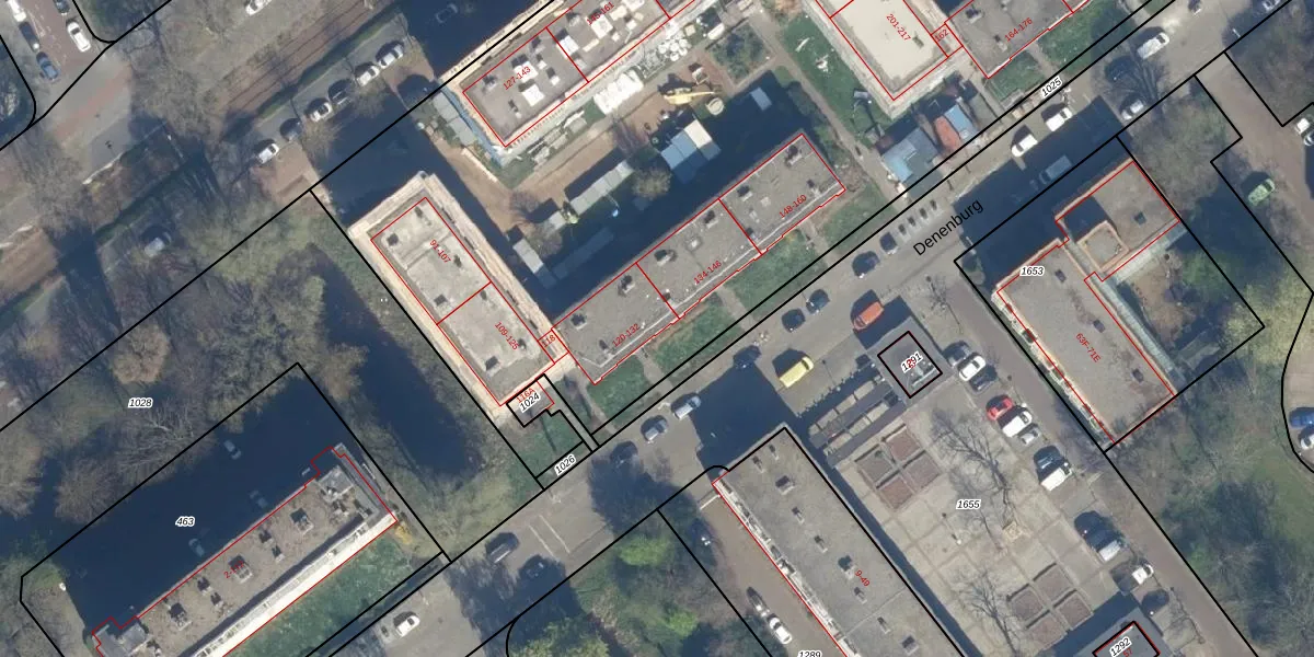 Het perceel waarop Denenburg 132 staat heeft een oppervlakte van 1,3 ha. Dit is een zeer groot perceel. De perceeloppervlakte wordt geregistreerd door het Kadaster. Gedetailleerde informatie over de maten van dit perceel kunt u vinden in het rapport Kadastrale kaart met maatvoering van Denenburg 132.