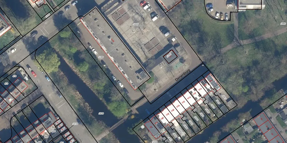 Het perceel waarop Denenburg 23 staat heeft een oppervlakte van 1546 m². Dit is een zeer groot perceel. De perceeloppervlakte wordt geregistreerd door het Kadaster. Gedetailleerde informatie over de maten van dit perceel kunt u vinden in het rapport Kadastrale kaart met maatvoering van Denenburg 23.