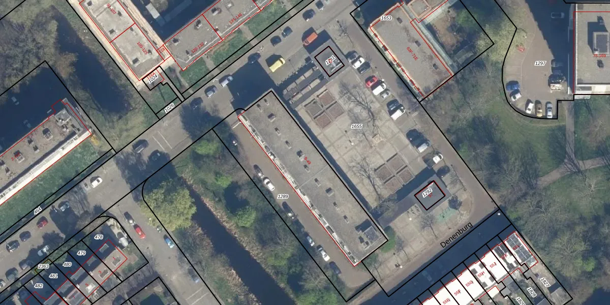 Het perceel waarop Denenburg 33 staat heeft een oppervlakte van 1546 m². Dit is een zeer groot perceel. De perceeloppervlakte wordt geregistreerd door het Kadaster. Gedetailleerde informatie over de maten van dit perceel kunt u vinden in het rapport Kadastrale kaart met maatvoering van Denenburg 33.