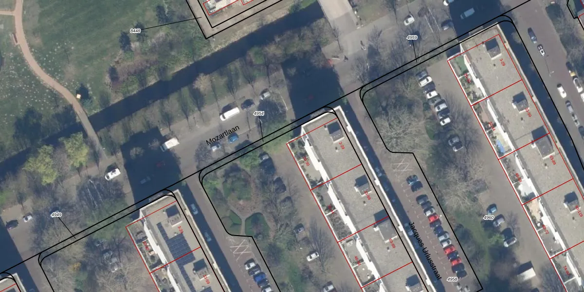 Het adres is gelegen op perceel 4955 in de sectie H en de kadastrale gemeente Loosduinen. De kadastrale aanduiding is aldus LDN03-H-4955. De gemiddelde perceeloppervlakte in de kadastrale gemeente Loosduinen is 1424,57 m². Dit perceel is met zijn 4537 m² dus groter dan gemiddeld. Het grootste perceel in de kadastrale gemeente is 4,61 km². Het kleinste perceel heeft een oppervlakte van 0 m². Op het perceel zijn 101 adressen aanwezig. De huidige grenzen van het perceel zijn digitaal in de Basisregistratie Kadaster (BRK) geregistreerd op 16-12-2003.