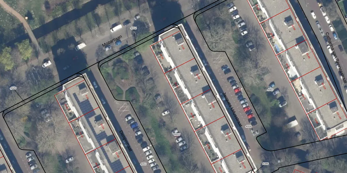 Het perceel waarop Denijsstraat 38 staat heeft een oppervlakte van 4537 m². Dit is een zeer groot perceel. De perceeloppervlakte wordt geregistreerd door het Kadaster. Gedetailleerde informatie over de maten van dit perceel kunt u vinden in het rapport Kadastrale kaart met maatvoering van Denijsstraat 38.