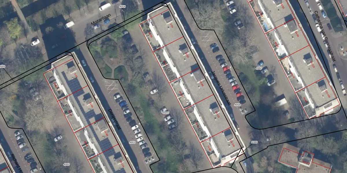 Het perceel waarop Denijsstraat 48 staat heeft een oppervlakte van 4537 m². Dit is een zeer groot perceel. De perceeloppervlakte wordt geregistreerd door het Kadaster. Gedetailleerde informatie over de maten van dit perceel kunt u vinden in het rapport Kadastrale kaart met maatvoering van Denijsstraat 48.