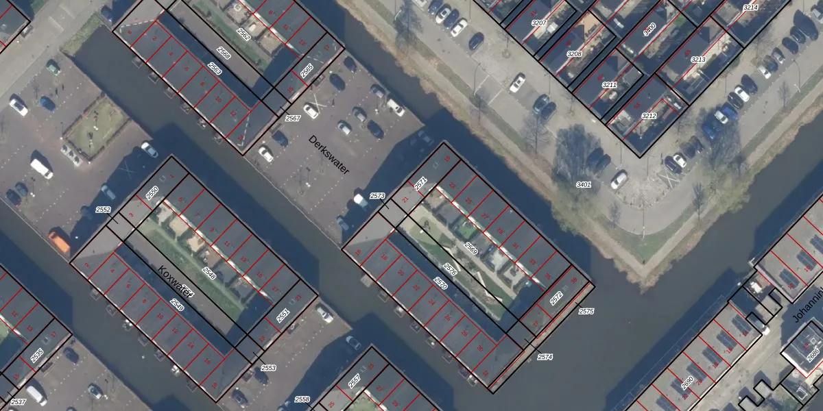 Derkswater 21 is gelegen op kadastraal perceel GVH49BK2571. Deze kadastrale aanduiding is uniek en wordt gebruikt door het Kadaster om eigendomsrechten en andere zakelijke rechten vast te leggen. Het perceel maakt onderdeel uit van de kadastrale gemeente 's-Gravenhage.