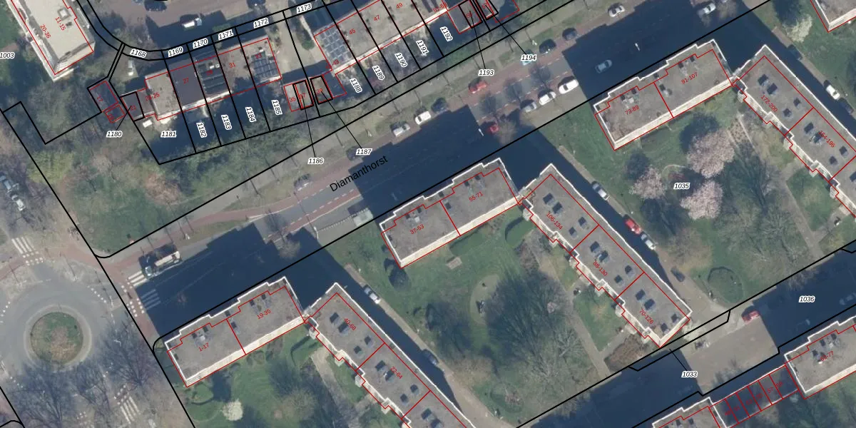Het perceel waarop Diamanthorst 49 staat heeft een oppervlakte van 1,7 ha. Dit is een zeer groot perceel. De perceeloppervlakte wordt geregistreerd door het Kadaster. Gedetailleerde informatie over de maten van dit perceel kunt u vinden in het rapport Kadastrale kaart met maatvoering van Diamanthorst 49.