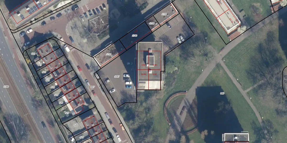 Het adres ligt op het perceel GVH34-AS-1057, dat zich in de kadastrale gemeente 's-Gravenhage bevindt. De oppervlakte van het perceel is 1824 m². Dat is groter dan gemiddeld in 's-Gravenhage, waar de gemiddelde perceeloppervlakte op 1318,64 m² ligt. Het kleinste perceel in de kadastrale gemeente is 0 m² groot. De grootste perceeloppervlakte is 11,0 ha. Er zijn 48 adressen aanwezig op het perceel. De laatste wijziging in het de Basisregistratie Kadaster (BRK) was op 10-05-2002.