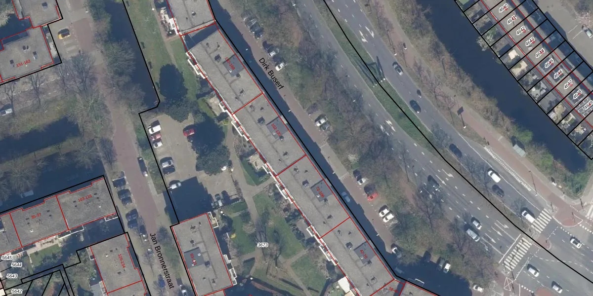 Het perceel waarop Dirk Buserf 104 staat heeft een oppervlakte van 8935 m². Dit is een zeer groot perceel. De perceeloppervlakte wordt geregistreerd door het Kadaster. Gedetailleerde informatie over de maten van dit perceel kunt u vinden in het rapport Kadastrale kaart met maatvoering van Dirk Buserf 104.