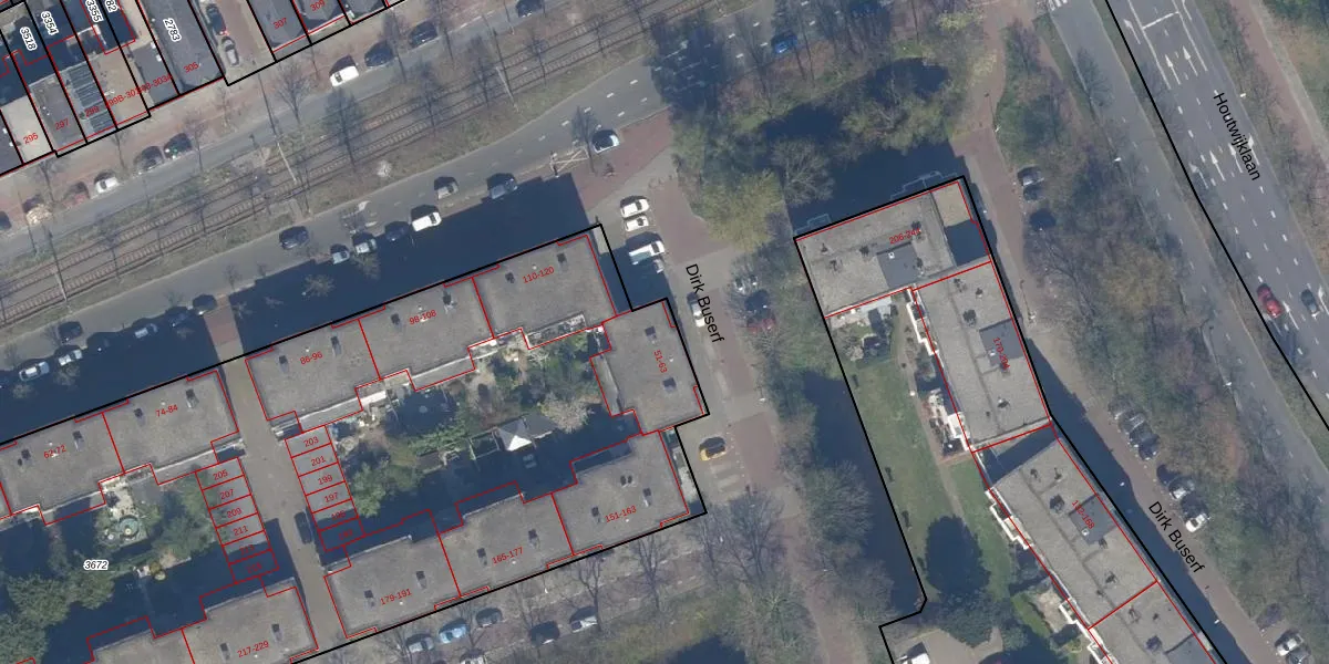 Het perceel waarop Dirk Buserf 59 staat heeft een oppervlakte van 5709 m². Dit is een zeer groot perceel. De perceeloppervlakte wordt geregistreerd door het Kadaster. Gedetailleerde informatie over de maten van dit perceel kunt u vinden in het rapport Kadastrale kaart met maatvoering van Dirk Buserf 59.