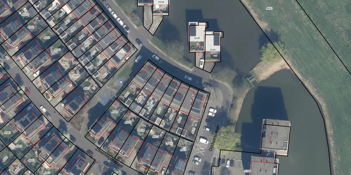 Het perceel waarop Dodaarsoever 34 staat heeft een oppervlakte van 179 m². Dit is een middelgroot perceel. De perceeloppervlakte wordt geregistreerd door het Kadaster. Gedetailleerde informatie over de maten van dit perceel kunt u vinden in het rapport Kadastrale kaart met maatvoering van Dodaarsoever 34.