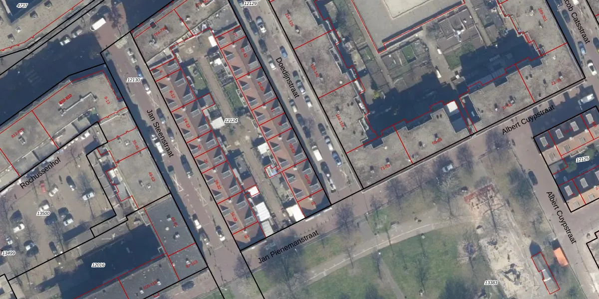 Het perceel waarop Doedijnstraat 63 staat heeft een oppervlakte van 2894 m². Dit is een zeer groot perceel. De perceeloppervlakte wordt geregistreerd door het Kadaster. Gedetailleerde informatie over de maten van dit perceel kunt u vinden in het rapport Kadastrale kaart met maatvoering van Doedijnstraat 63.