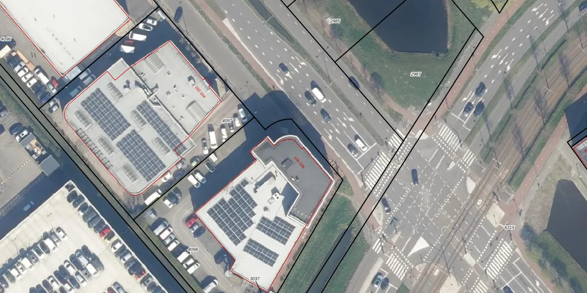 Het perceel waarop Donau 106 staat heeft een oppervlakte van 2919 m². Dit is een zeer groot perceel. De perceeloppervlakte wordt geregistreerd door het Kadaster. Gedetailleerde informatie over de maten van dit perceel kunt u vinden in het rapport Kadastrale kaart met maatvoering van Donau 106.