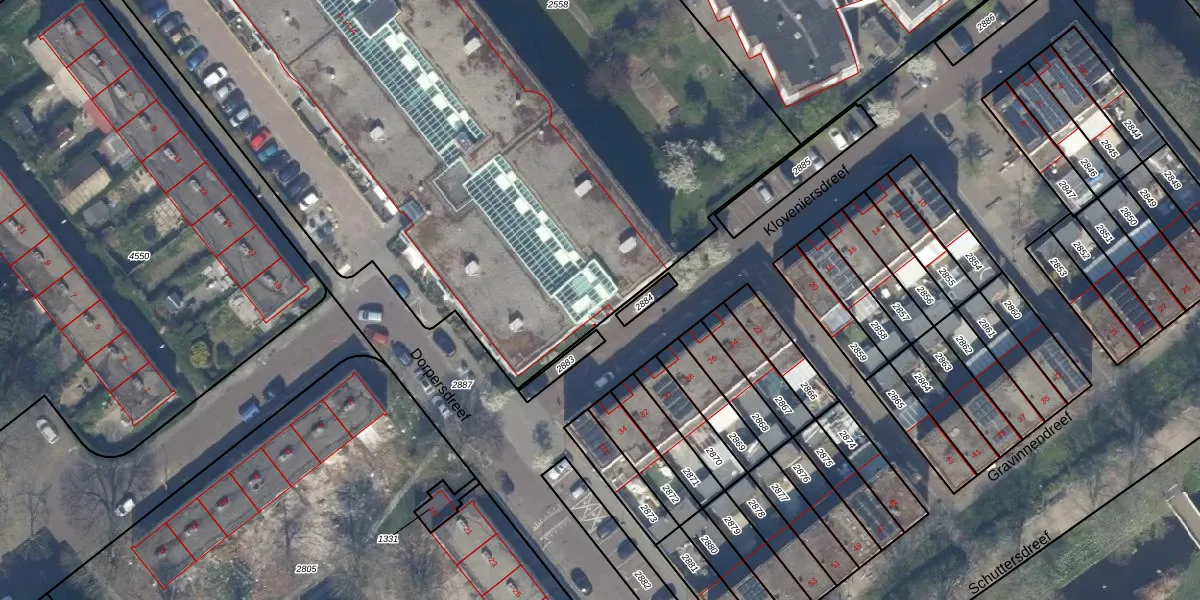 Het perceel waarop Dorpersdreef 142-A staat heeft een oppervlakte van 8855 m². Dit is een zeer groot perceel. De perceeloppervlakte wordt geregistreerd door het Kadaster. Gedetailleerde informatie over de maten van dit perceel kunt u vinden in het rapport Kadastrale kaart met maatvoering van Dorpersdreef 142-A.