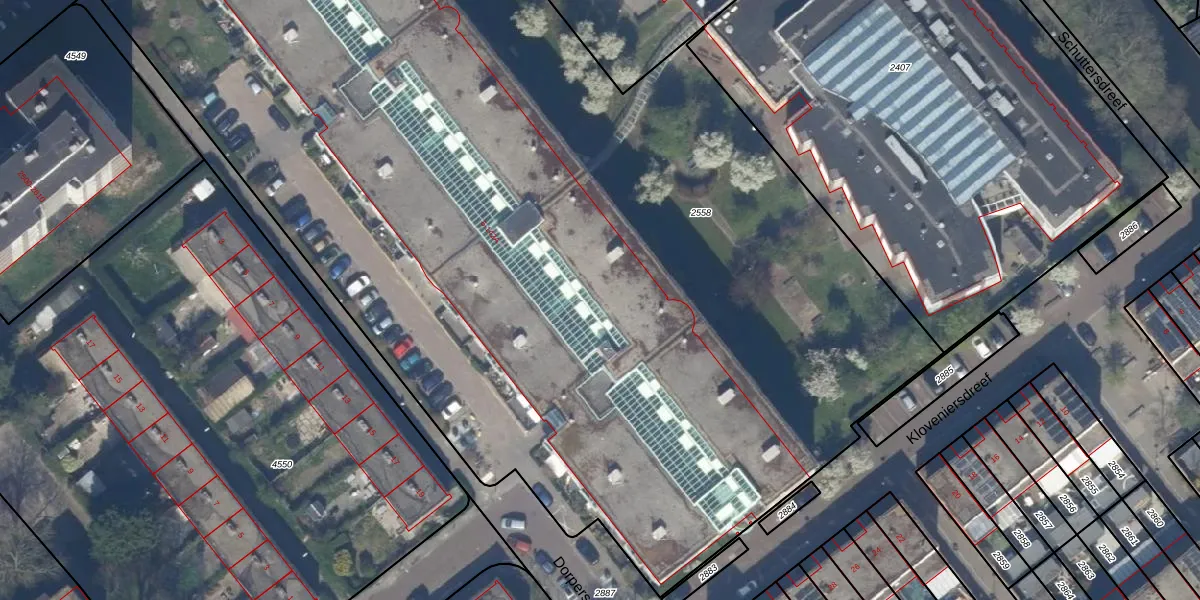 Het perceel waarop Dorpersdreef 98-A staat heeft een oppervlakte van 8855 m². Dit is een zeer groot perceel. De perceeloppervlakte wordt geregistreerd door het Kadaster. Gedetailleerde informatie over de maten van dit perceel kunt u vinden in het rapport Kadastrale kaart met maatvoering van Dorpersdreef 98-A.
