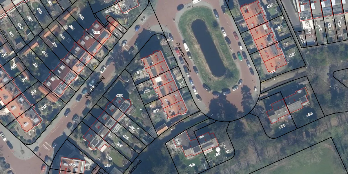 Het perceel waarop Dotterbloemlaan 22 staat heeft een oppervlakte van 336 m². Dit is een groot perceel. De perceeloppervlakte wordt geregistreerd door het Kadaster. Gedetailleerde informatie over de maten van dit perceel kunt u vinden in het rapport Kadastrale kaart met maatvoering van Dotterbloemlaan 22.