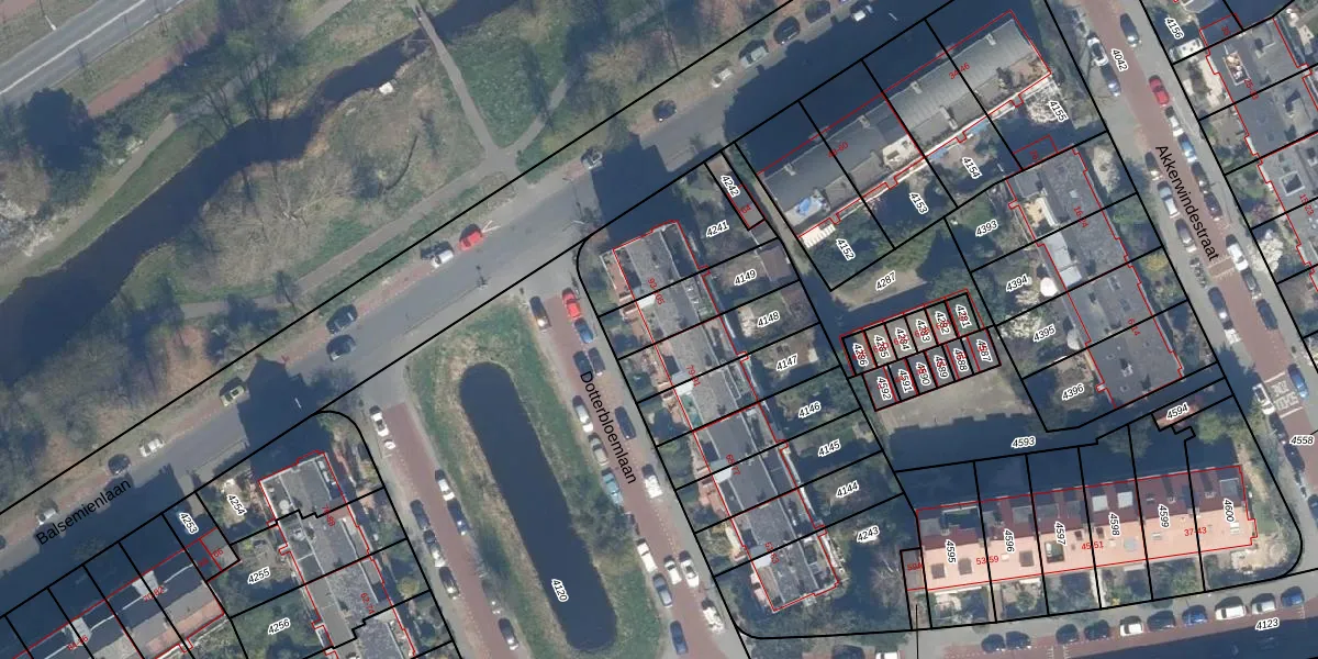 Het perceel waarop Dotterbloemlaan 95 staat heeft een oppervlakte van 216 m². Dit is een middelgroot perceel. De perceeloppervlakte wordt geregistreerd door het Kadaster. Gedetailleerde informatie over de maten van dit perceel kunt u vinden in het rapport Kadastrale kaart met maatvoering van Dotterbloemlaan 95.