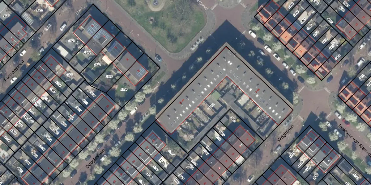 Het perceel waarop Douglaslaan 40 staat heeft een oppervlakte van 1980 m². Dit is een zeer groot perceel. De perceeloppervlakte wordt geregistreerd door het Kadaster. Gedetailleerde informatie over de maten van dit perceel kunt u vinden in het rapport Kadastrale kaart met maatvoering van Douglaslaan 40.