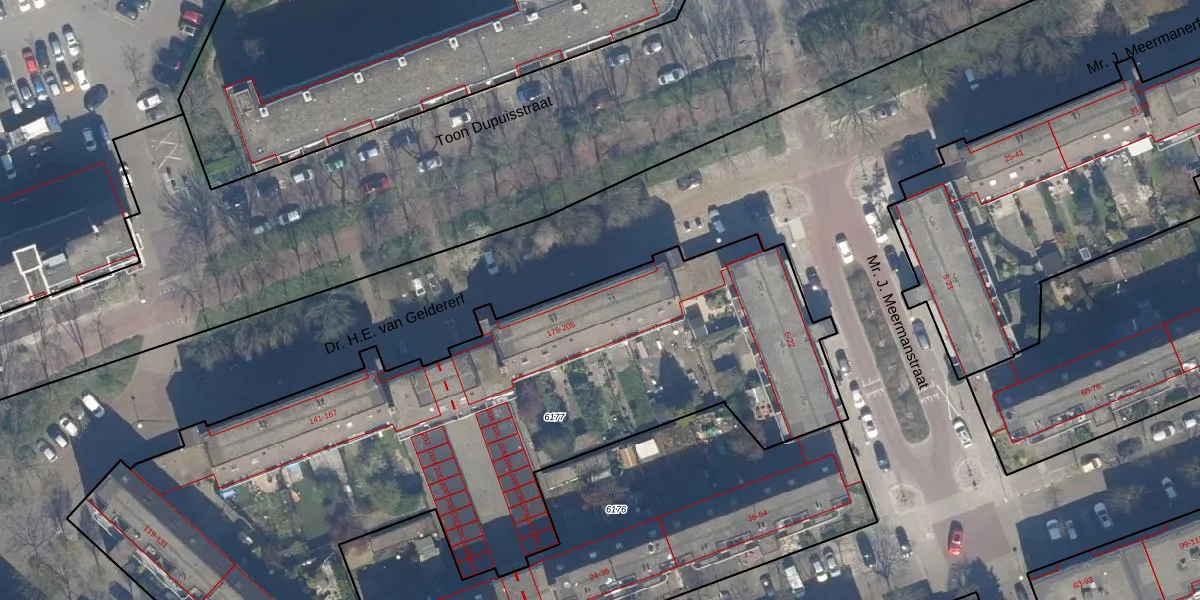Dr. H.E. van Geldererf 201 is gelegen op kadastraal perceel LDN03M6177. Deze kadastrale aanduiding is uniek en wordt gebruikt door het Kadaster om eigendomsrechten en andere zakelijke rechten vast te leggen. Het perceel maakt onderdeel uit van de kadastrale gemeente Loosduinen.
