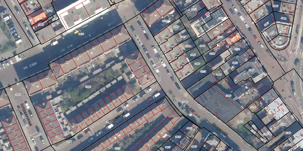 Drogersdijk 15 is gelegen op kadastraal perceel GVH25AH3365. Deze kadastrale aanduiding is uniek en wordt gebruikt door het Kadaster om eigendomsrechten en andere zakelijke rechten vast te leggen. Het perceel maakt onderdeel uit van de kadastrale gemeente 's-Gravenhage.