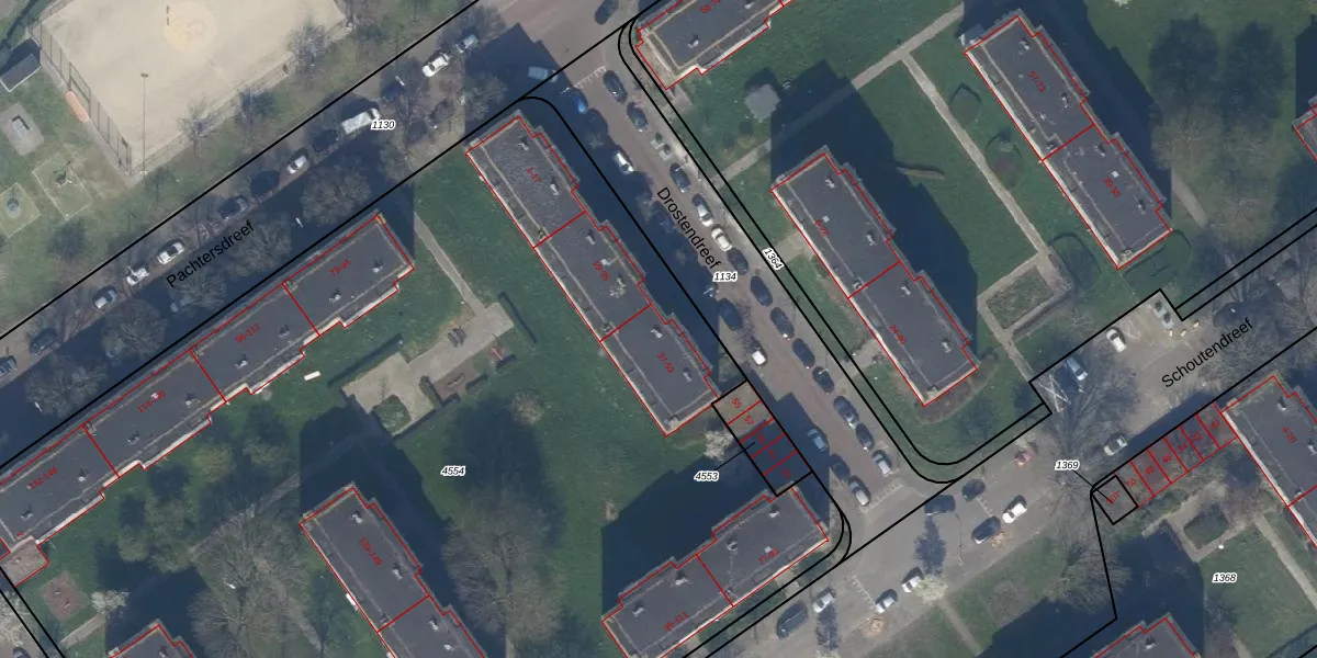 Drostendreef 39 is gelegen op kadastraal perceel GVH37AW4554. Deze kadastrale aanduiding is uniek en wordt gebruikt door het Kadaster om eigendomsrechten en andere zakelijke rechten vast te leggen. Het perceel maakt onderdeel uit van de kadastrale gemeente 's-Gravenhage.