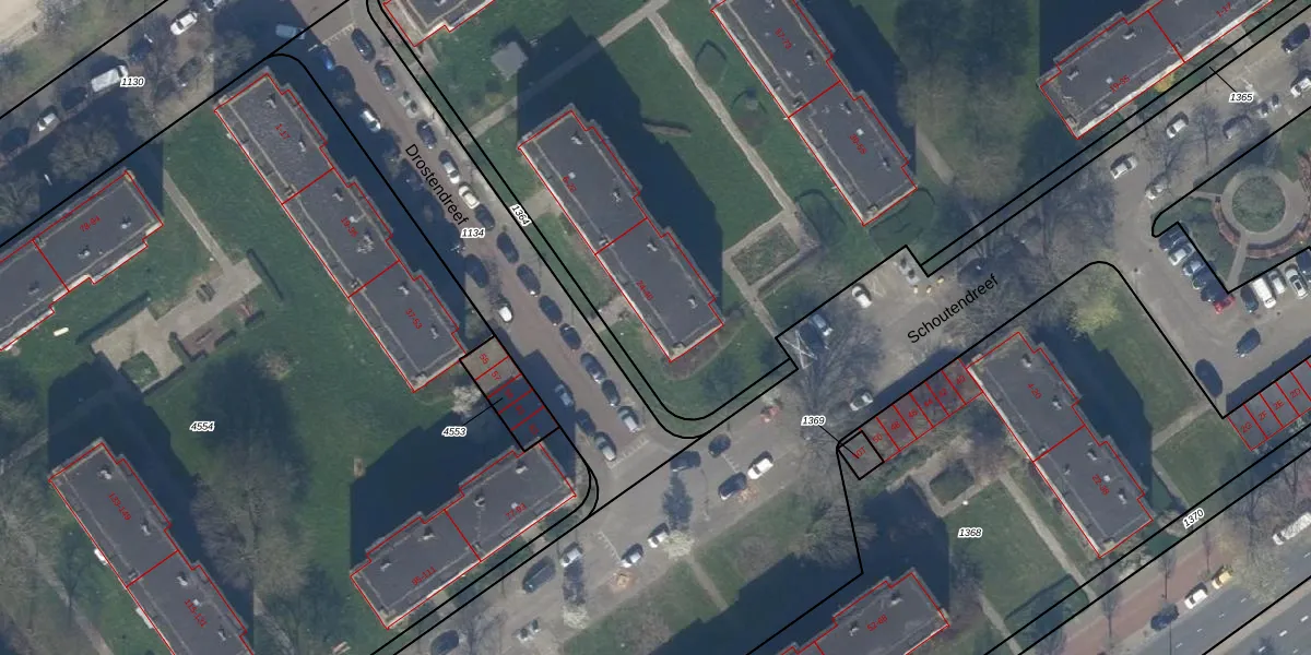 Drostendreef 40 is gelegen op kadastraal perceel GVH37AW1363. Deze kadastrale aanduiding is uniek en wordt gebruikt door het Kadaster om eigendomsrechten en andere zakelijke rechten vast te leggen. Het perceel maakt onderdeel uit van de kadastrale gemeente 's-Gravenhage.