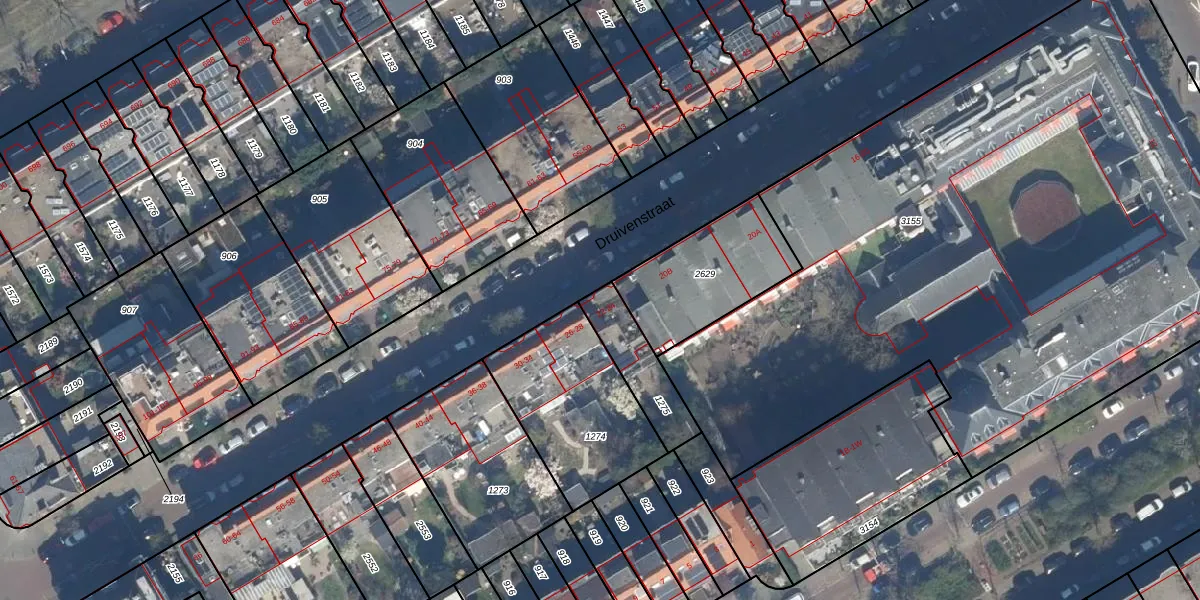 Het perceel waarop Druivenstraat 24 staat heeft een oppervlakte van 192 m². Dit is een middelgroot perceel. De perceeloppervlakte wordt geregistreerd door het Kadaster. Gedetailleerde informatie over de maten van dit perceel kunt u vinden in het rapport Kadastrale kaart met maatvoering van Druivenstraat 24.