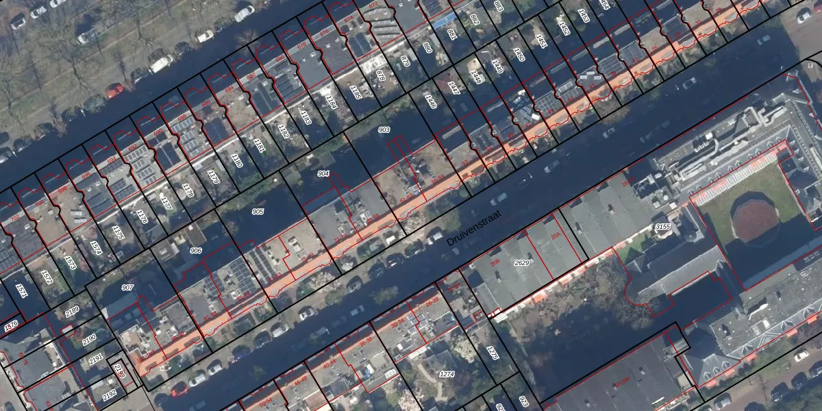 Druivenstraat 61 is gelegen op kadastraal perceel GVH36AV903. Deze kadastrale aanduiding is uniek en wordt gebruikt door het Kadaster om eigendomsrechten en andere zakelijke rechten vast te leggen. Het perceel maakt onderdeel uit van de kadastrale gemeente 's-Gravenhage.