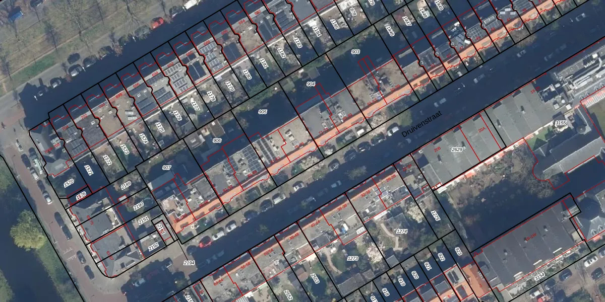 Het perceel waarop Druivenstraat 75 staat heeft een oppervlakte van 550 m². Dit is een groot perceel. De perceeloppervlakte wordt geregistreerd door het Kadaster. Gedetailleerde informatie over de maten van dit perceel kunt u vinden in het rapport Kadastrale kaart met maatvoering van Druivenstraat 75.