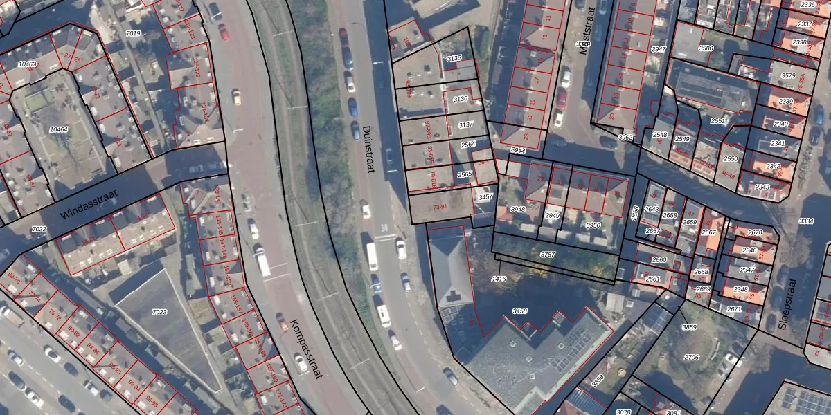 Het perceel waarop Duinstraat 73 staat heeft een oppervlakte van 163 m². Dit is een middelgroot perceel. De perceeloppervlakte wordt geregistreerd door het Kadaster. Gedetailleerde informatie over de maten van dit perceel kunt u vinden in het rapport Kadastrale kaart met maatvoering van Duinstraat 73.
