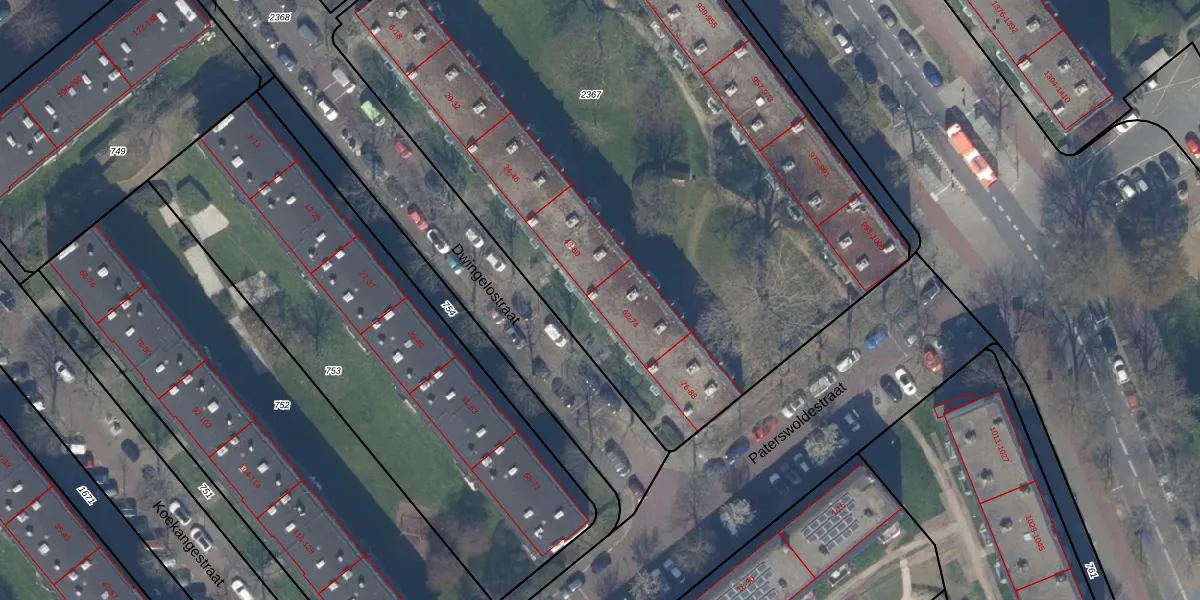Het perceel waarop Dwingelostraat 62 staat heeft een oppervlakte van 6458 m². Dit is een zeer groot perceel. De perceeloppervlakte wordt geregistreerd door het Kadaster. Gedetailleerde informatie over de maten van dit perceel kunt u vinden in het rapport Kadastrale kaart met maatvoering van Dwingelostraat 62.