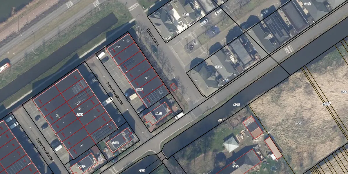 Het perceel waarop Ebrostraat 1-T staat heeft een oppervlakte van 3,8 ha. Dit is een zeer groot perceel. De perceeloppervlakte wordt geregistreerd door het Kadaster. Gedetailleerde informatie over de maten van dit perceel kunt u vinden in het rapport Kadastrale kaart met maatvoering van Ebrostraat 1-T.