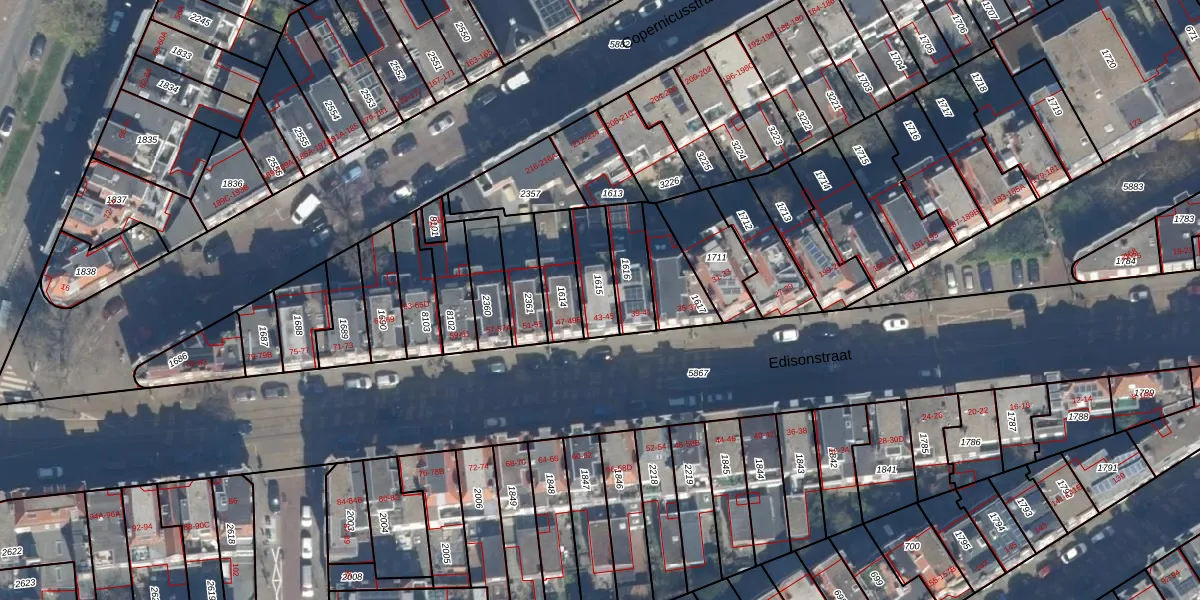 Het perceel waarop Edisonstraat 43-B staat heeft een oppervlakte van 130 m². Dit is een middelgroot perceel. De perceeloppervlakte wordt geregistreerd door het Kadaster. Gedetailleerde informatie over de maten van dit perceel kunt u vinden in het rapport Kadastrale kaart met maatvoering van Edisonstraat 43-B.