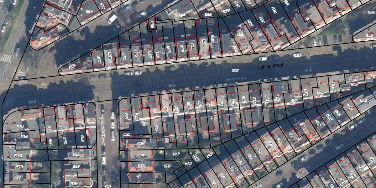 Het perceel waarop Edisonstraat 64 staat heeft een oppervlakte van 181 m². Dit is een middelgroot perceel. De perceeloppervlakte wordt geregistreerd door het Kadaster. Gedetailleerde informatie over de maten van dit perceel kunt u vinden in het rapport Kadastrale kaart met maatvoering van Edisonstraat 64.